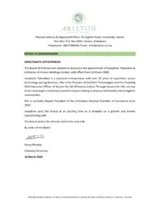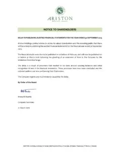 Annual Reports View our past and current annual reports and other public notices. Annual Reports AGM Reports Other Reports Ariston Annual Report 2024 Ariston Annual Report 2023 Ariston Annual Report 2022 Ariston Annual Report 2021 Annual Report 2020 Preliminary Results 2020 Annual Report 2019 Preliminary Results 2019 Annual Report 2016 Ariston Results of 78th Annual General Meeting 2025 Ariston Notice of 78th AGM 2024 Ariston Results of 77th Annual General Meeting 2024 Ariston Notice of 77th AGM 2023 Ariston Notice of 76th Annual General Meeting 2022 Ariston Results of 76th Annual General Meeting 2023 Ariston Notice of 75th Annual General Meeting 2021 Ariston Results of 75th Annual General Meeting 2022 Ariston Notice of CEO Retirement And New Appointment Ariston Holdings January 2026 Directorate changes Ariston Holdings 2025 Financial Statements deadline extension Ariston Holdings Notice of Extension of Publication of 2025 Financial Statements Ariston Holdings Directorate Appointment